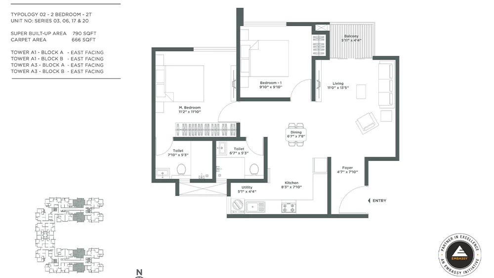 | 2 BHK | 971-1032 Sq. Ft. | ₹ 93.44 Lakhs* - 1.02 Cr* | Price Breakup |
